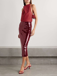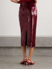 Veronica Beard's 'Koa' skirt is drenched in burgundy sequins that sparkle from all angles. It's cut from stretch-tulle and fully lined in jersey for comfort and coverage. Style yours with everything from a bodysuit to a tucked-in shirt. Size & Fit - Fits true to size, take your normal size - Midi-length, designed to be worn at the waist - Mid-weight, stretchy fabric - Model is 180cm/ 5'11" and is wearing a US 2 Model measurements: - Bust: 81cm/ 32” - Waist: 62cm/ 24.5” - Hip: 88cm/ 34.5” Details & Care - Burgundy sequined stretch-tulle - Concealed hook and zip fastening at back - 95% polyester, 5% elastane; lining: 86% polyamide, 14% elastane - Dry clean - Designer color: Wine