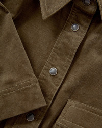 Product details Your everyday uniform—elevated. Crafted from premium stretch cotton in deep green corduroy, the Koulis offers a soft, comfortable feel for all-day wear. Designed with a stand collar and half snap-front placket, this piece gives you the option to wear it as open or closed as you like. Finished with elongated sleeves and both front and side welt pockets for a clean, functional touch. Endlessly versatile—pair with sneakers for a laid-back daytime look or tall boots for something more elevated. - 97% Cotton, 3% Elastane - Dry clean only - Style #J2509SH03021185