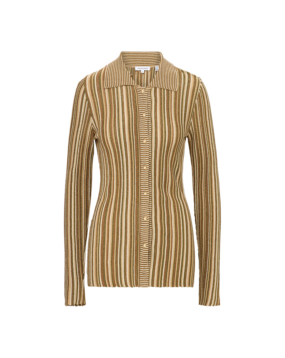 Product details Spun from an Italian stretch blend, the Landon cardigan features a slim, body-skimming silhouette and thin multicolor stripes, flecked with metallic bronze and gold. A great layering piece, it also pairs well with the matching Massaro pant for a chic matching set. - 83% Viscose, 17% Metallic Fiber - Fabric country of origin: Italy - Dry Clean Only - Style #2502KS4290593