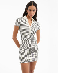 Product details The perfect polo dress in black and white stripes. The ultimate in one-and-done ease, the Lanier mini dress has just the right amount of stretch to hug the body beautifully. Designed for versatility, this wardrobe essential can pair with sneakers, sandals, and heels alike, making it a must-have for both getaways and every day. - 50% Polyester, 26% Cotton, 24% Rayon - Turn inside out and machine wash on gentle cycle. Lay flat to dry. - Style #J2505JY17621621