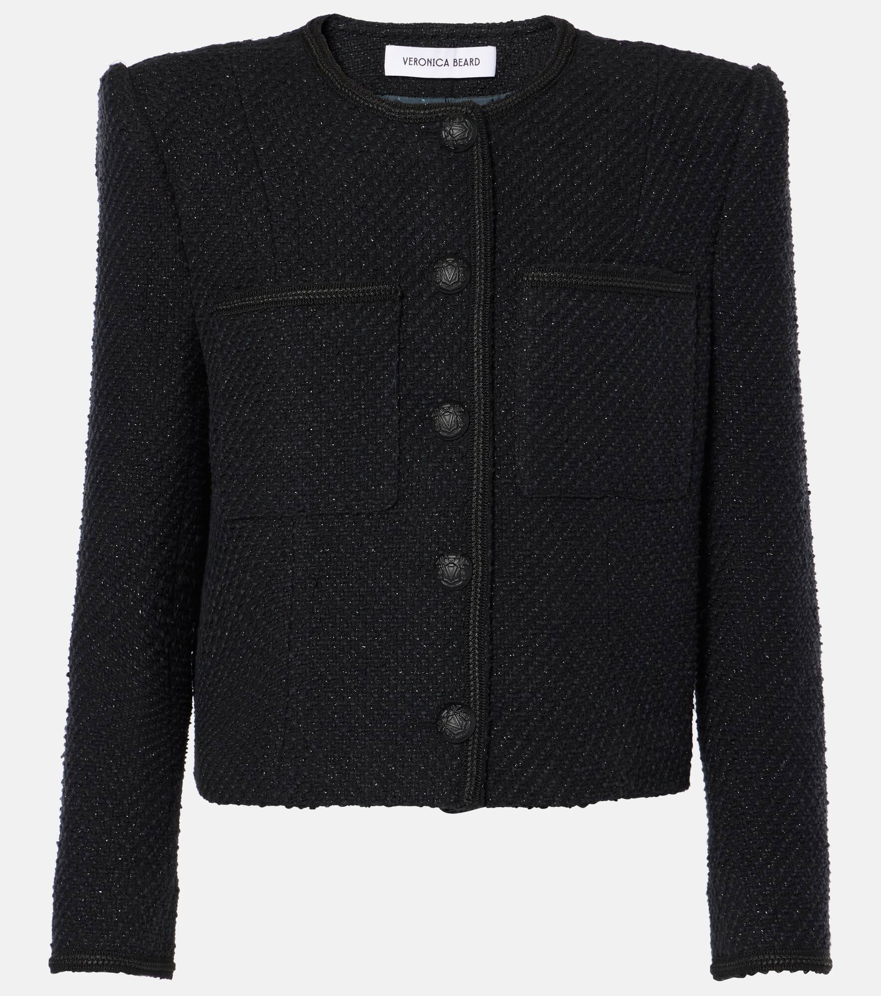 Product Details - Material: 76% cotton, 24% polyester - Care instructions: dry clean - Made in China - Designer color name: Black - Closure: buttoned front - Pockets: angled chest pockets - Item number: P00991802 Size & Fit - True to size - Shoulder pad inserts - Straight fit - Non-stretchy fabric - Slightly cropped - The model seen in the picture is 178cm-5'10" and wearing a size US 4