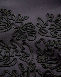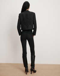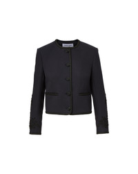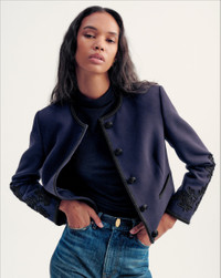 Product details Timeless and meticulously crafted. The Latrell lady jacket is defined by its clean, collarless silhouette and cropped, structured fit. Intricate embroidery along the back and sleeves creates rich texture and dimension, while looped braided trim, covered buttons, and welt pockets offer a refined finish. Style it with denim for daytime chic or layer it over a slip dress for an evening out. - 65% Viscose, 15% Acrylic, 12% Polyester, 8% Wool - Lining: 100% Viscose - Dry clean only - Style #2509OW12211331