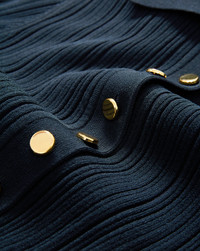 Product details The ultimate 9-to-9 dress, the Lauper is refined enough for the office and cool enough for cocktails. Spun from a ribbed stretch-knit, it features a fitted mini silhouette and a trim collar that flows into a half-placket of gold buttons. Faux front pockets and elongated cuffs complete the look. A one-and-done style for instant polish, pair it with heels, flats, sneakers...you name it. - 83% Viscose, 17% Polyester - Dry clean only - Style #2508KS1221886