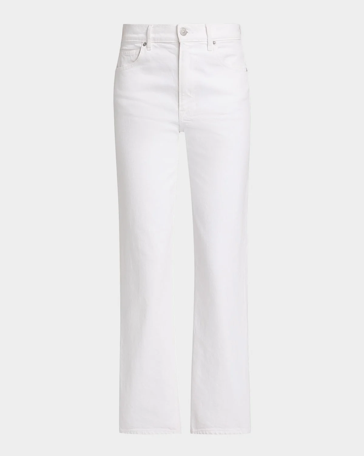 Veronica Beard "Leah" jeans crafted from comfort-stretch denim & nbsp; Approx. 11" rise; 29" inseam Mid-rise; sits high on the hip Five-pocket style Straight legs Ankle length Button/zip fly; belt loops Cotton/elastane Machine wash Made in USA SIZE & FITModel measurements: 5 & apos;10" tallModel is wearing a US size 4/Small