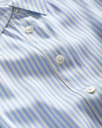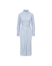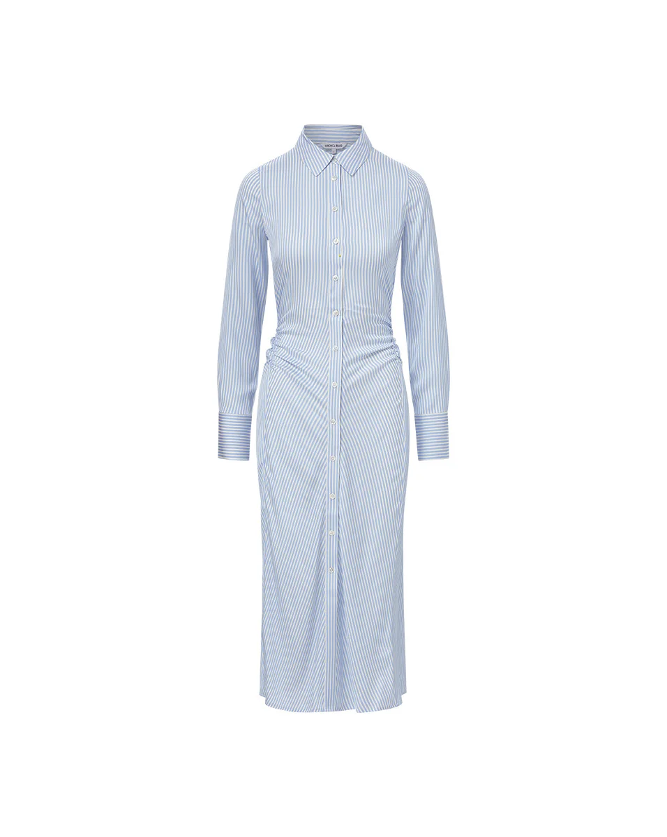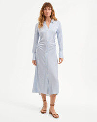 Product details The shirtdress, reimagined. Expertly tailored from premium stretch silk, the Lex dress is an elegant take on the wardrobe classic. The midi style, in blue and white stripes, features ruching on the sides for waist definition and a beautiful drape. Dress it up or down, wear it day or night, with flats or heels. Pro tip: Leave a few buttons undone at the bottom for a sexy front-slit effect. - 54% Silk, 40% Viscose, 6% Elastane - 100% Polyester - Dry clean only - Style #2504FL3321065