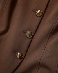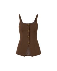 Product details Expertly tailored from premium stretch-tailoring blend, the Liana vest in rich walnut brown features an elongated, streamlined silhouette with a cinched waist, square neckline, and cutaway hem. Brass-tone buttons complete the look. Wear with the coordinating Stila pant for a chic matching set. - 63% Polyester, 27% Viscose, 7% Cotton, 3% Elastane - Lining: 100% Polyester - Made in the USA - Dry clean only - Style #2511SU00241080