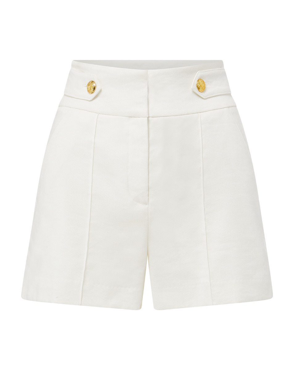 Part of our core collection, the Runo short is crafted from an Italian stretch-linen blend. This high-rise, relaxed piece also features front pleats and decorative crest buttons at the waistline. Wear with its coordinating jacket for a summer-suiting moment no one will forget. DETAILS & FIT - 58% Linen, 27% Polyester, 14% Viscose, 1% Elastane - Lined - Rise 12.25" | Inseam 3.25" | Leg opening 27 1/8", based on a size 2 - Our model is 5'10" and is wearing a size 2 - Made in USA - Professional dry-clean only - Style #CORELN146448