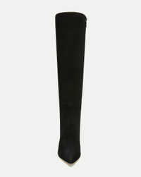 Product details The knee-high Lisa boot features a stiletto heel and pointy-toe finish. The pull-on style is a glamorous addition to your closet—perfect for date night and beyond. Style them with your favorite dresses and skirts; you'll get it right, every time. - Suede - 3.75" heel - Store in a cool dry place inside dust bag - Clean under the supervision of a leather specialist - Style #I4211L1