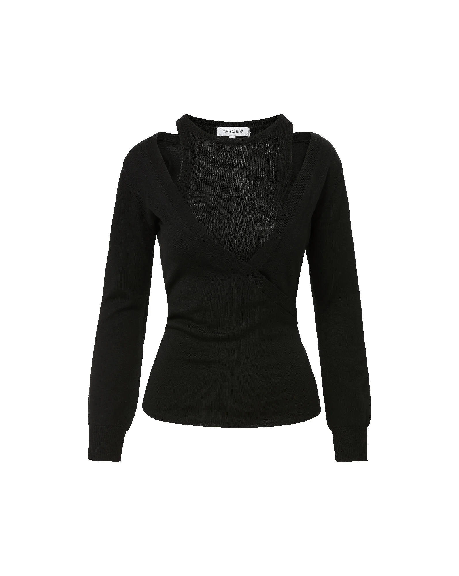 Product details Effortless layering. Crafted from 100% merino wool in black, Crafted from 100% merino wool in black, the Lolasee is designed as two pieces in one: a V-neck sweater layered over a ribbed tank, with a subtle shoulder-revealing detail. Wrap detailing along the trim and ribbed cuffs completes the design. An easy essential for cooler months, it pairs effortlessly with VB denim for an elevated everyday look. - 100% Merino Wool - Dry clean only - Style #2511KA1390852
