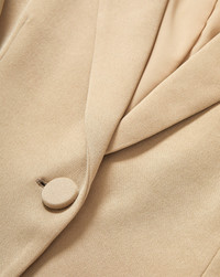 Product details A VB best-seller, now updated in versatile khaki. Expertly tailored in the US, this single-breasted jacket features an elongated body and a cutaway silhouette. Darting at the waist and welt and flap pockets complete the look. Wear with jeans to elevate the everyday or pair with the coordinating pants for a chic matching-set moment. Switch it up with a dickey for even more styling options. - 72% Acetate, 28% Rayon - Lining: 100% Polyester - Made in the USA - Closure: Buttons - Dry clean only - Style #2506CR0041090