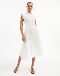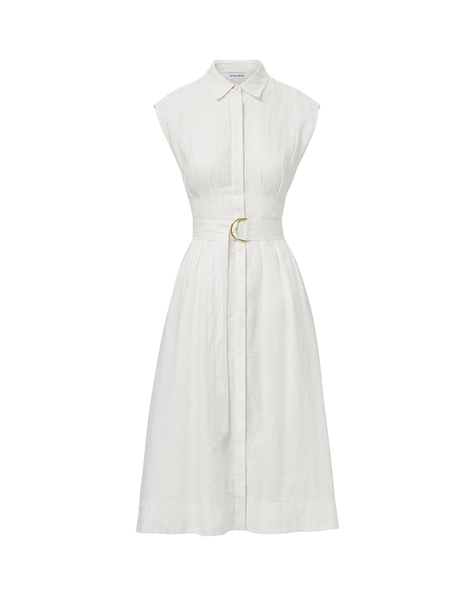 Product details A fit-and-flare shirtdress, with ease. Expertly tailored from lightweight linen, the Loreta is a midi style defined by a relaxed fit and a D-ring belt that cinches in the waist. Cap sleeves and a trim collar complete the effortless look. Pair with flat sandals or dress it up a notch with kitten heels. - 100% Linen - Lining: 100% Cotton - Dry clean only - Style #2503LN4221622