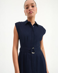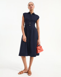 Product details A fit-and-flare shirtdress, with ease. Expertly tailored from lightweight linen, the Loreta is a midi style defined by a relaxed fit and a D-ring belt that cinches in the waist. Cap sleeves and a trim collar complete the effortless look. Pair with flat sandals or dress it up a notch with kitten heels. - 100% Linen - Lining: 100% Cotton - Dry clean only - Style #2503LN4221622