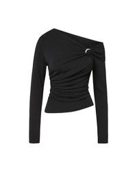 Product details A modern take on a wardrobe essential. Crafted from black stretch jersey, the Lozea long-sleeve top is cut for a body-skimming fit with asymmetric draping and ruching throughout. A folded, off-one-shoulder neckline is secured with silver-tone hardware for a cool edge. Both a staple and a statement, pair it with denim by day or a sleek mini skirt after dark. - 95% Viscose, 5% Elastane - Hand wash cold - Style #2511JY19641483