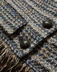 Product details The classic lady jacket—with a boho twist. Crafted from premium Italian tweed, the Lyons features a collarless, cropped silhouette with a boxy fit, accented with multicolored fringe at the hem and sleeves for a playful, unexpected finish. Three-quarter sleeves and flap pockets complete the look. A versatile piece, wear it buttoned up as a chic one-and-done top—or layer it over a cashmere knit or tee. - 42% Cotton, 35% Polyester, 10% Polyamide, 6% Other fibers, 5% Wool, 2% Acrylic - Lining: 100% Polyester - Fabric country of origin: Italy - Made in USA - Dry clean only - Style #2509TW11311332