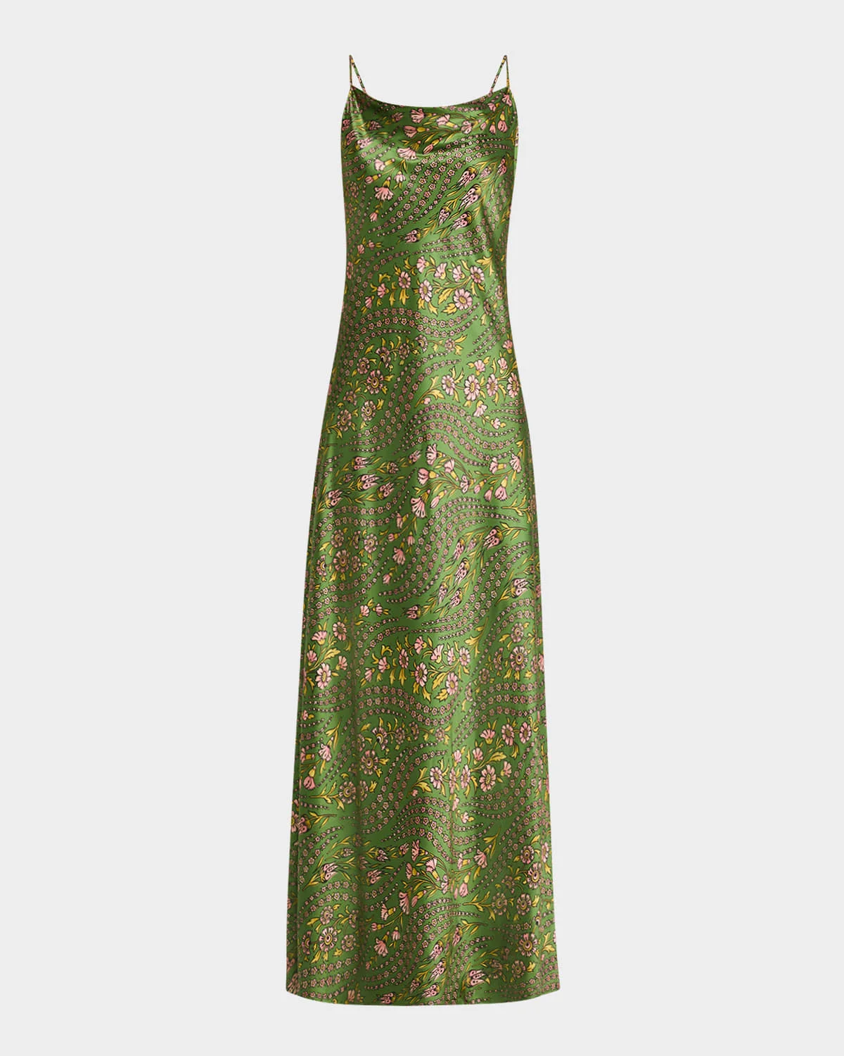 - Veronica Beard "Madison" floral-print dress crafted in luxurious silk - Cowl neckline - Spaghetti straps - Low-cut back - Slip silhouette - Full length - Side zip - Silk - Dry clean - Imported