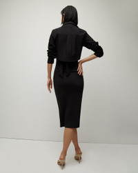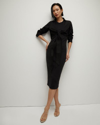 A new take on our signature mixed-media, the Malone dress has a removable wrap-style poplin shirt layered over it’s form-fitting ribbed cotton body. It’s two-in-one perfection. The collared shirt and midi length add to its sophisticated appeal. Wear with heels for a day that goes from desk to drinks. DETAILS & FIT - 97% Cotton, 3% Elastane - Sleeve length 32.5" | Length 46.5", based on a size S - Our model is 5'10" and is wearing a size S - Machine wash cold - Style #J2311JY020S0658