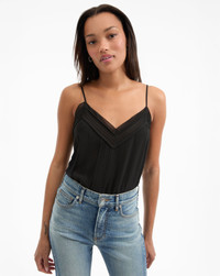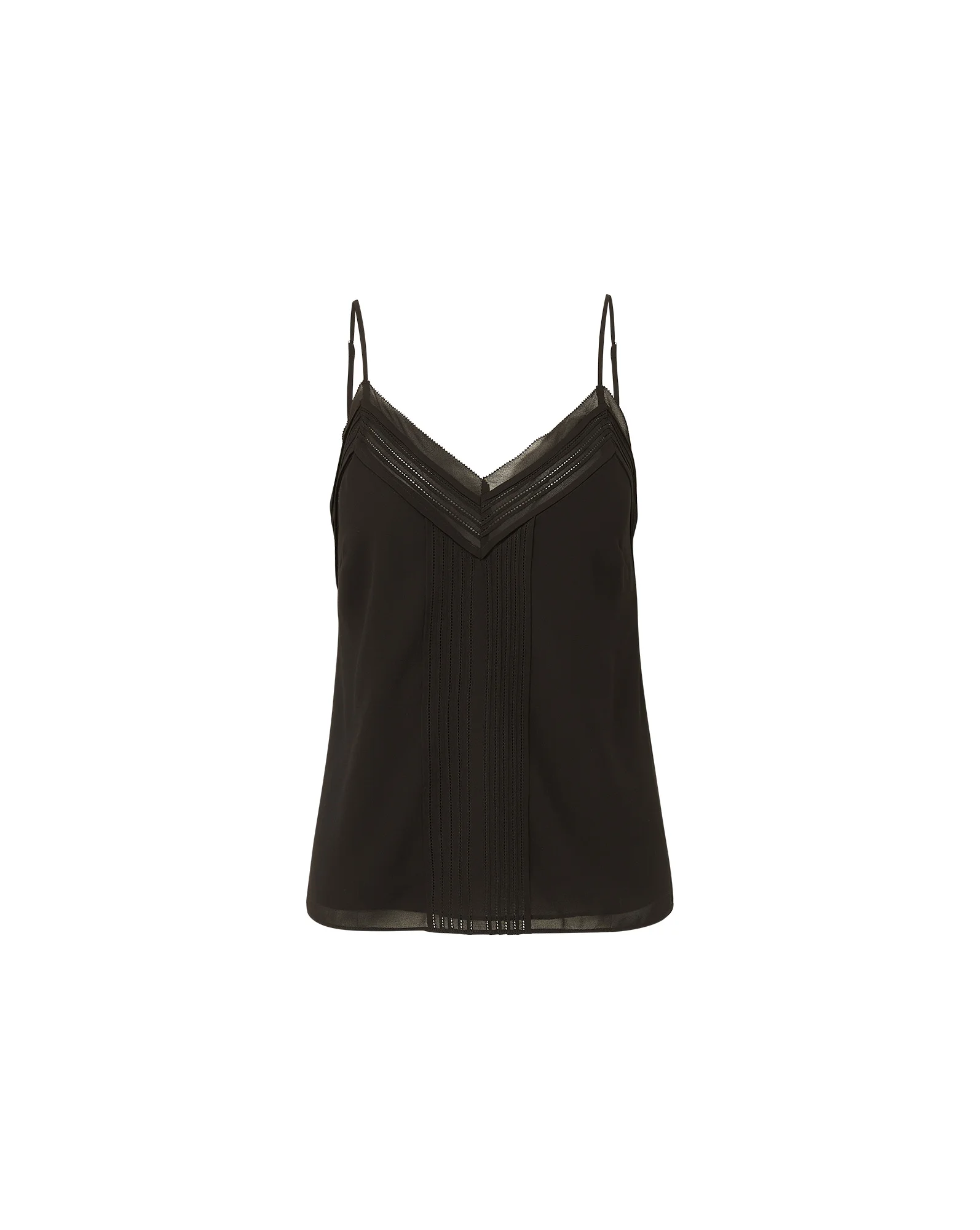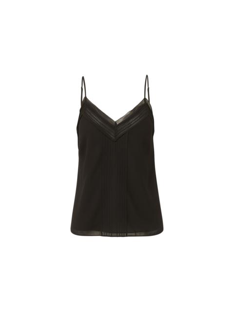 Product details Simple, sleek, and effortlessly elegant. Available in black and white, the Maray cami will be a versatile addition to your wardrobe. Crafted from a paper-thin, silk-like fabrication, this airy tank top features a relaxed silhouette, spaghetti straps, and pin-tucked details. Sheer panels by the neckline add to the allure. Layer under blazers for work or wear on its own with skinny jeans for a chic night out. - 100% Polyester - Lining: 100% Polyester - Dry clean only - Style #2506GG7041327