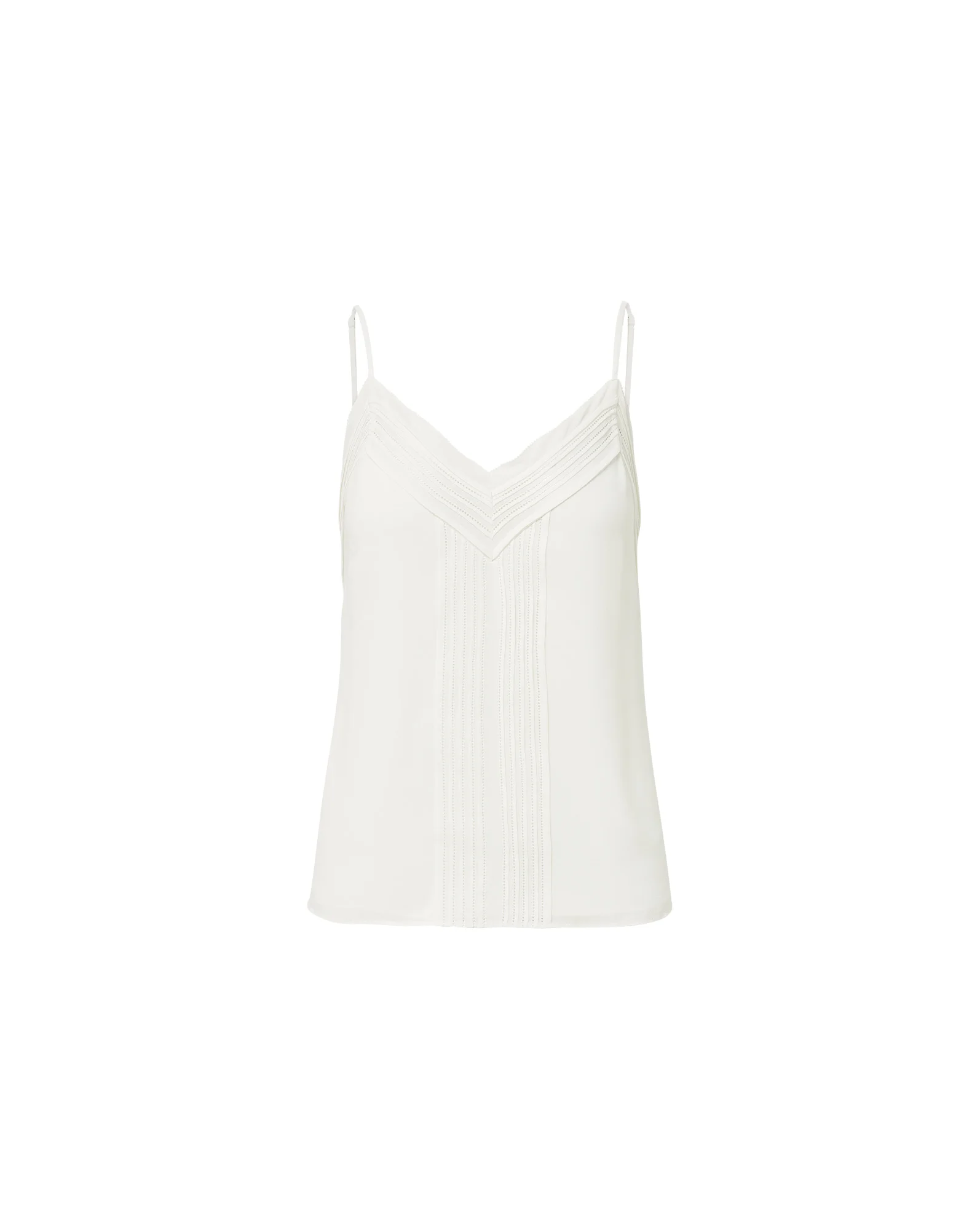 Product details Simple, sleek, and effortlessly elegant. Available in black and white, the Maray cami will be a versatile addition to your wardrobe. Crafted from a paper-thin, silk-like fabrication, this airy tank top features a relaxed silhouette, spaghetti straps, and pin-tucked details. Sheer panels by the neckline add to the allure. Layer under blazers for work or wear on its own with skinny jeans for a chic night out. - 100% Polyester - Lining: 100% Polyester - Dry clean only - Style #2506GG7041327