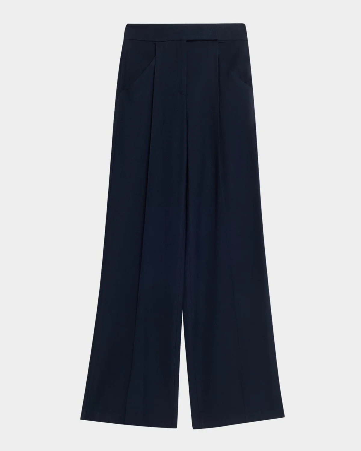 Veronica Beard & apos;s "Marbeau" pants are expertly tailored from a premium stretch blend with front pleats, a fluid drape, and a slub texture for the slightest sheen High rise Side slip pockets Back welt pockets Full length Wide legs Hidden hook/zip fly Viscose/elastane Dry clean Made in USA