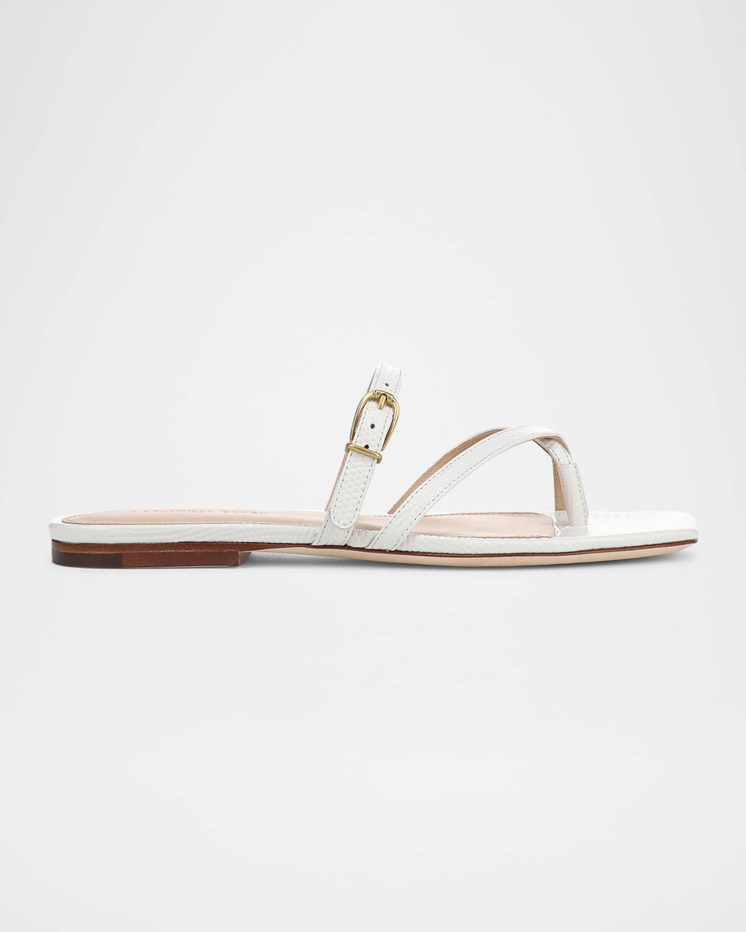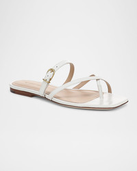 - Veronica Beard "Marthe" calf leather sandals - 0.25 in / 10 mm flat heel - Thong strap - Crisscross upper with mid-vamp buckle strap - Slide style - Lining: Leather - Spot clean - Imported Online Inquiries: NMS21_X6TV7 Store Inquiries: #4966178