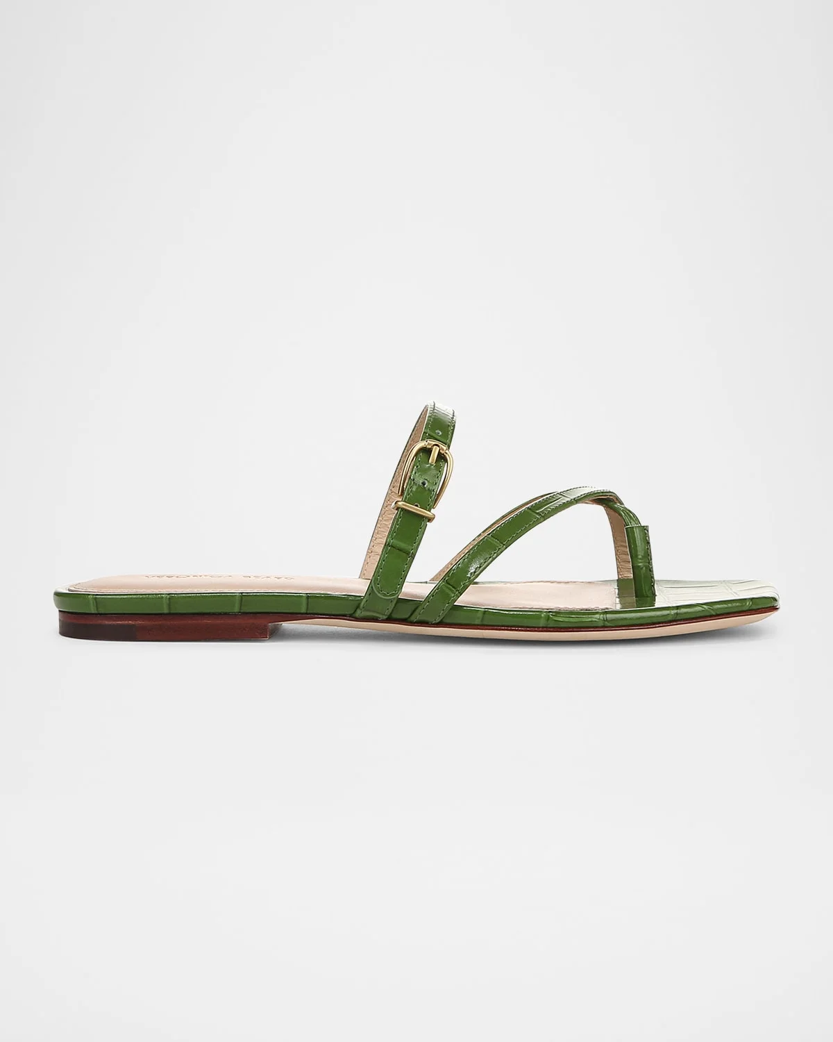 Marthe Croco Crisscross Buckle Flat Slide Sandals