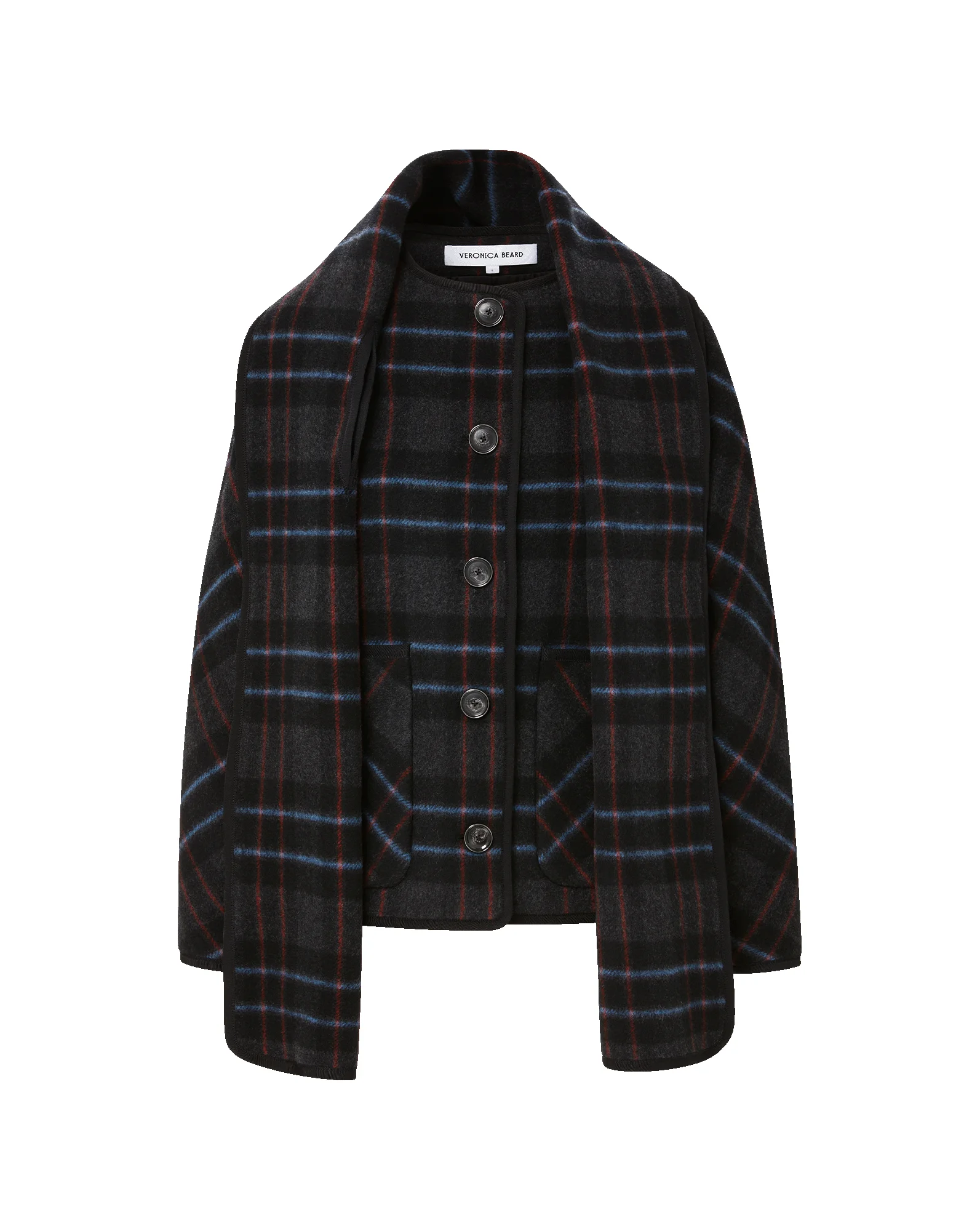 Product details Your most versatile layer. Spun from a premium Italian wool blend in classic plaid, the Martine coat can be worn three ways: with or without its removable scarf, or layered with a dickey. A jewel neckline, front welt pockets, and faux horn buttons complete the design. This is the coat you’ll reach for all season long. - 70% Wool, 27% Polyamide, 3% Other Fibers - Lining: 96% Polyester, 4% Elastane - Fabric country of origin: Italy - Dry clean only - Style #2510OW11770399
