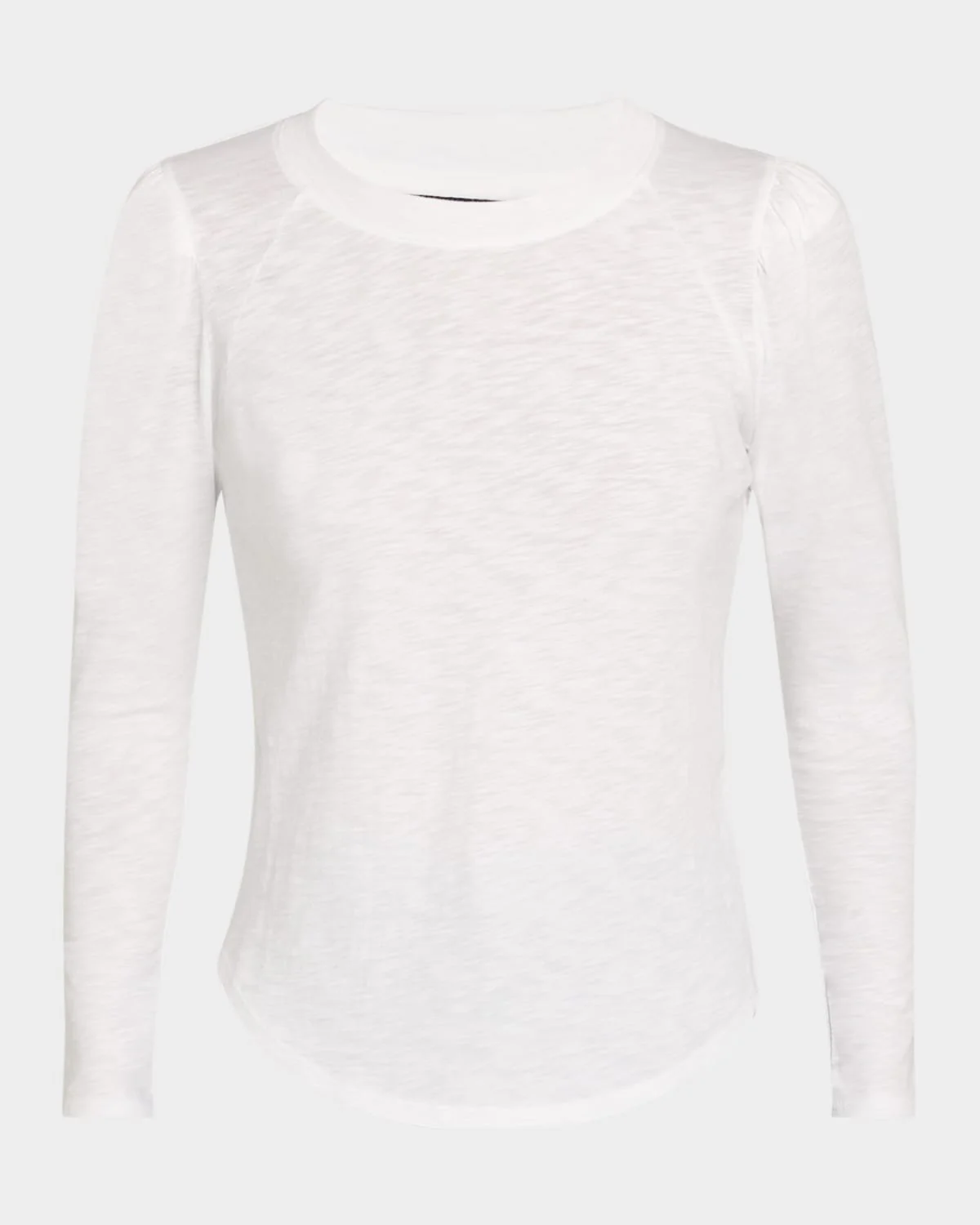 Veronica Beard Jeans "Mason" tee. Crew neckline. Long sleeves. Pullover style. Relaxed fit. Cotton. Dry clean. Made in Peru.