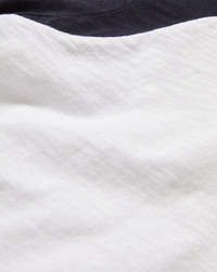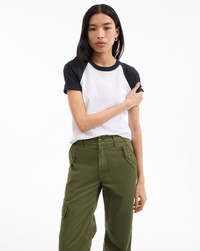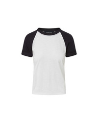 Product details A VB favorite, now with short sleeves. Made from super-soft slub jersey, the Mason baseball tee features raglan sleeves and relaxed fit. Great on its own or as a layering essential, this white and navy t-shirt is endlessly versatile. Wear with jeans and sneakers or dress it up with a denim mini, blazer, and heels. - 100% Cotton - Turn inside out and machine wash cold. Tumble dry on low. - Style #J2506JY007T0537