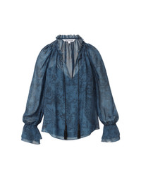 Product details Soft and feminine. The Maxime is crafted from premium silk and features a toile-inspired floral print throughout, complemented by a ruffled split neckline and bishop sleeves. Black tasseled drawstrings offer a self-tie neckline option for added versatility. Pair with black pants for a sleek finish, or style with the matching Graeme skirt for a cohesive look. - 100% Silk - Lining: 100% Polyester - Dry clean only - Style #2509CH3941310