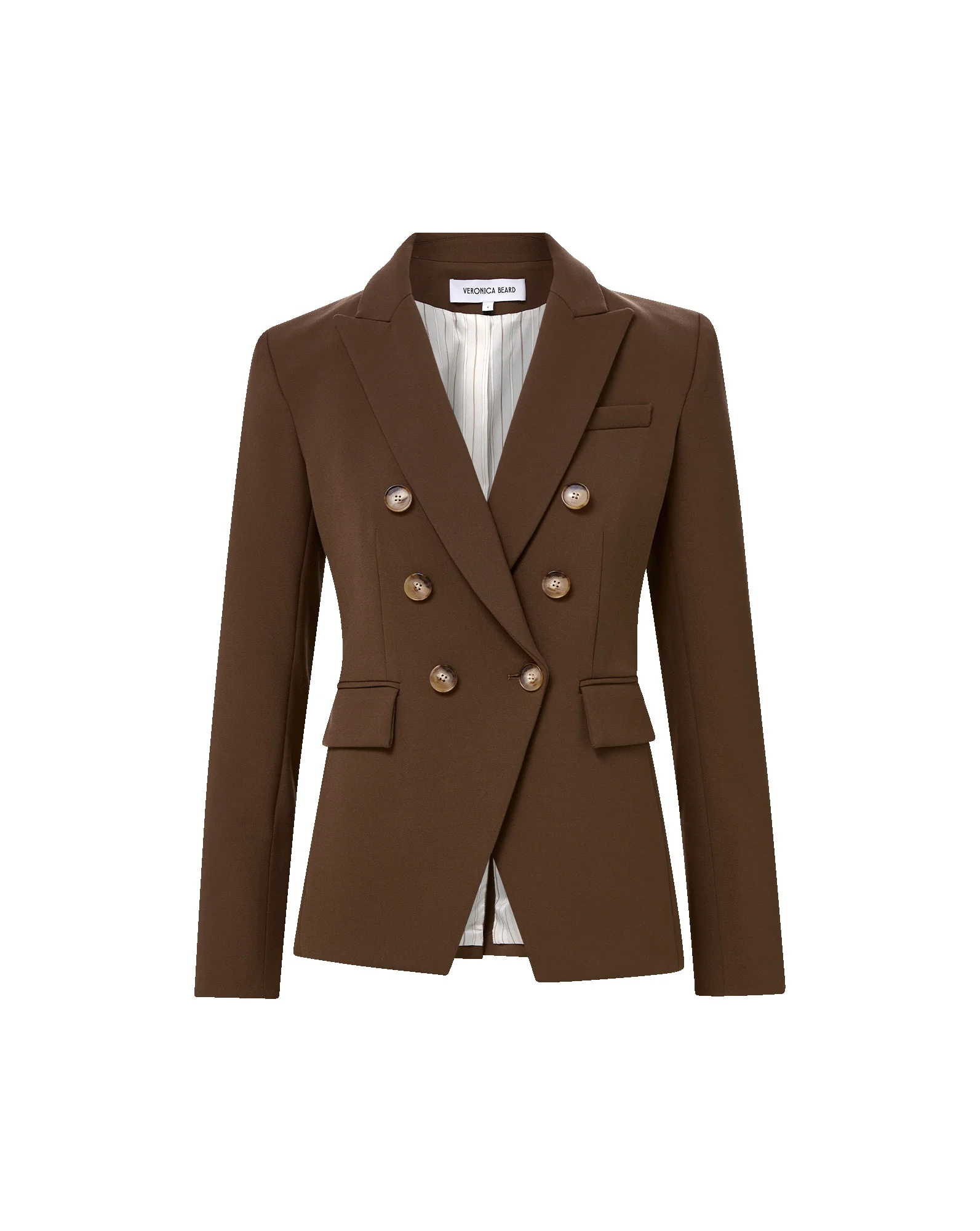 Product details The best-selling Miller Dickey Jacket, now in rich walnut brown. Everything you love about the VB classic remains the same—precision tailoring and a slim, flattering fit. Wear this eye-catching blazer with the coordinating Stila pant for a chic set, or with dark-wash denim to elevate the everyday. Add a dickey for even more styling options. - 63% Polyester, 27% Viscose, 7% Cotton, 3% Elastane - Linings: 100% Polyester, 95% Polyester, 5% Elastane - Made in the USA - Dry clean only - Style #2511SU0021492