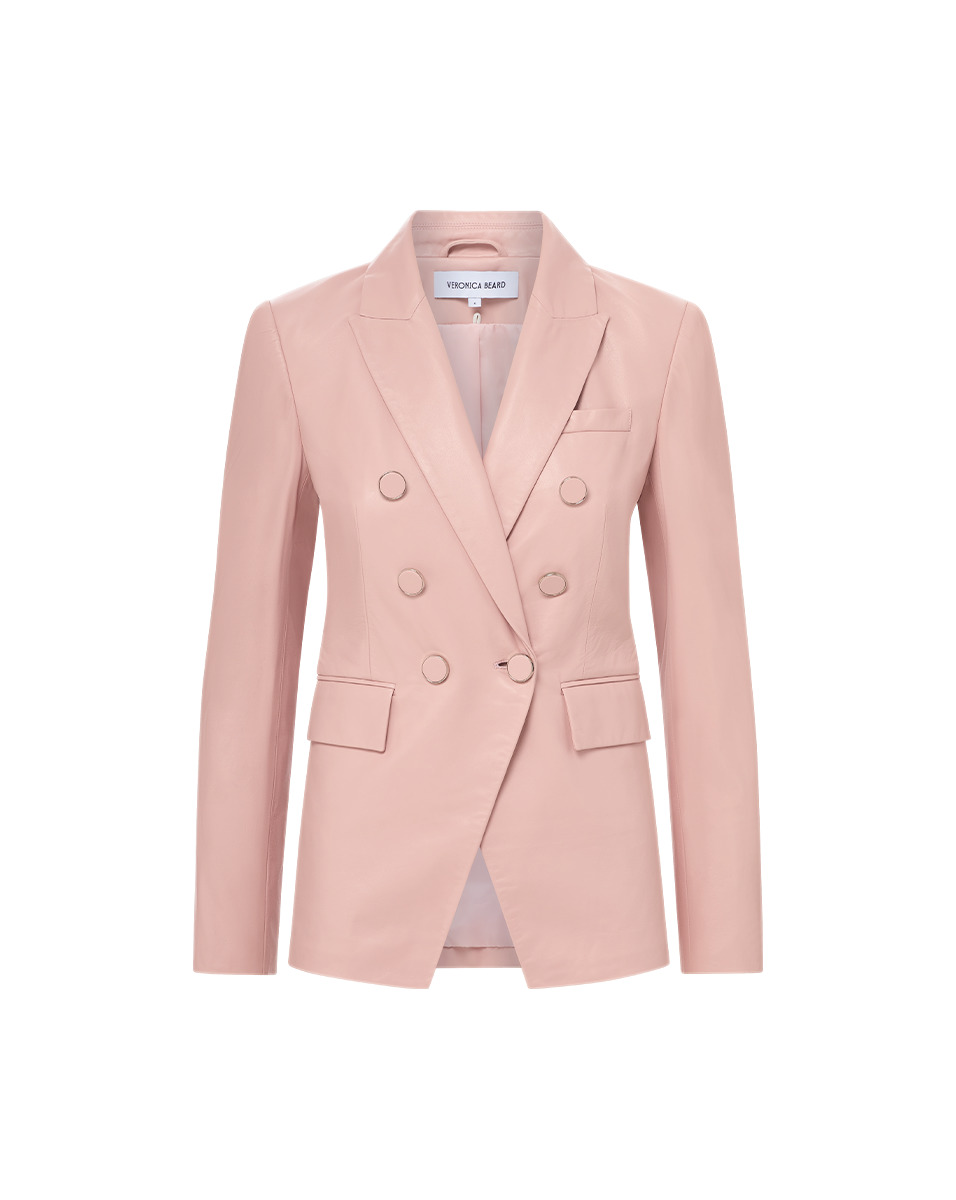 Product details The best-selling Miller, now in pink leather. Everything else you love about the this VB signature remains the same, from the precision tailoring and slight stretch to the slim, flattering fit. Wear with jeans and booties for an easy yet elevated everyday look. Switch it up with a dickey for even more options. - 100% Lambskin - Lining: 96% Polyester 4% Elastane - Dry Clean Only - Style #2502LT341492