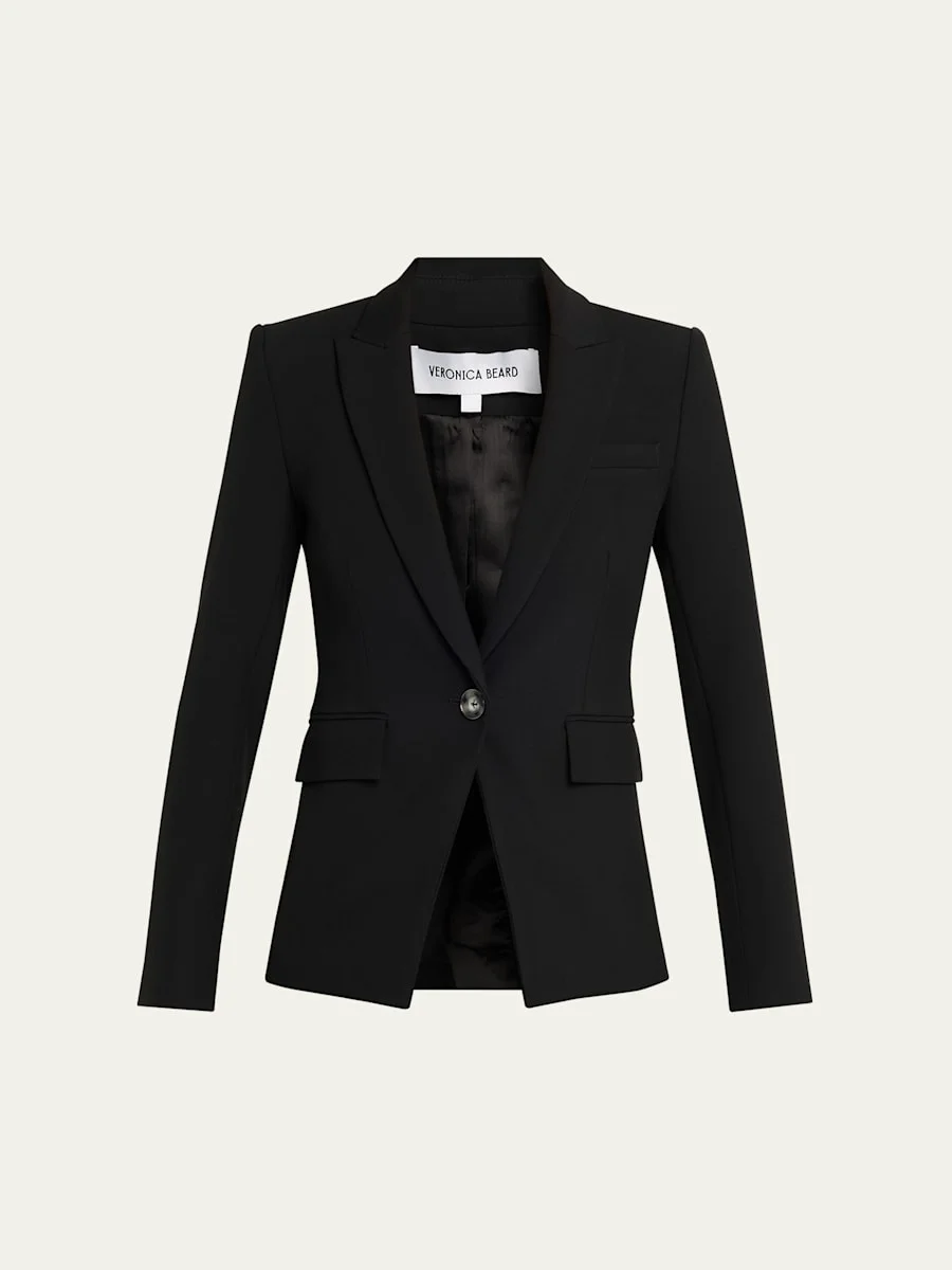 Veronica Beard "Miller" dickey jacket finished with a singlebreasted front Compatible with Veronica Beard dickey's (sold separately) Notch lapels Long sleeves with button cuffs Chest welt pocket Hip flap pockets Tailored fit Back vent Buttonfront Polyester/viscose/cotton Dry clean Made in USA