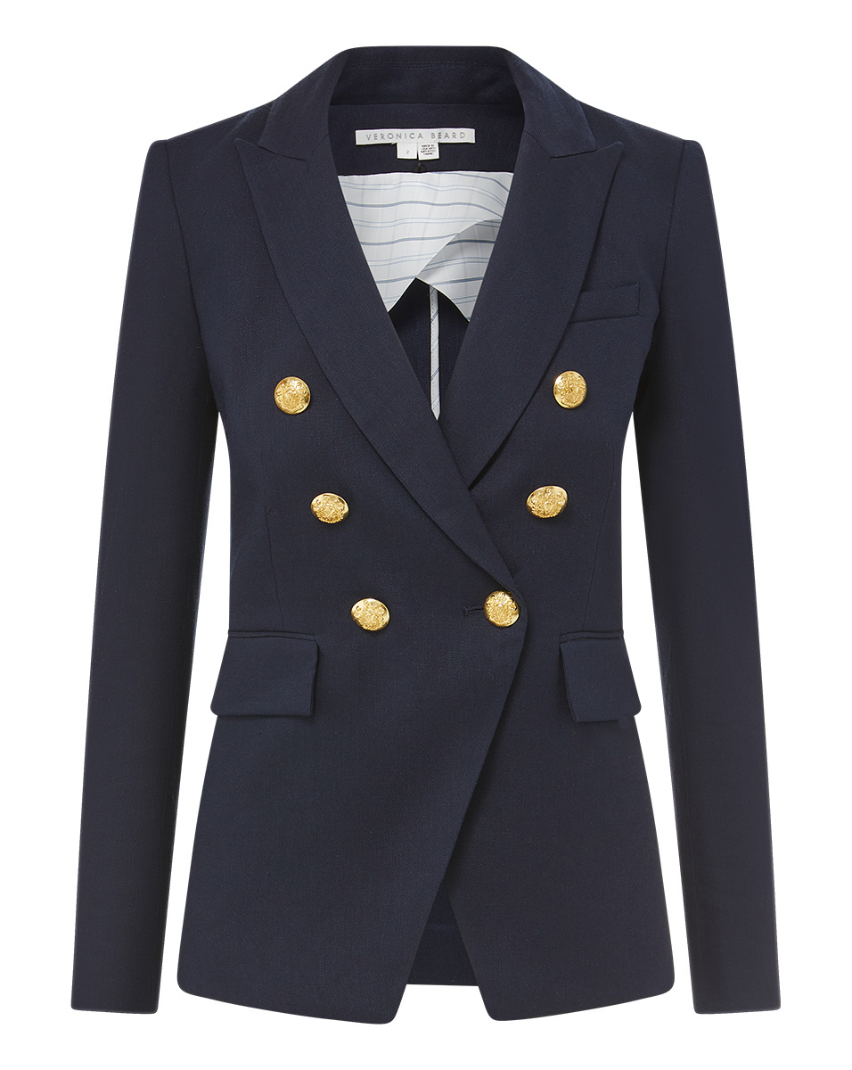 Meet our latest Miller jacket—now updated for warmer weather. Made here in the US, in a stretch-linen blend, this refined and yet lightweight piece will pull all your looks together with ease. Plus, the gold crest buttons give the jacket a polished finish. Throw it over your favorite summer dress for the perfect day-to-night ensemble. Pair with a dickey to complete the look. DETAILS & FIT - 58% Linen, 27% Polyester, 14% Viscose, 1% Elastane - Lined - Sleeve length 32.75" | Length 27 3/8", based on a size 2 - Our model is 5'10" and is wearing a size 2 - Made in USA - Professional dry-clean only - Style #CORELN141492