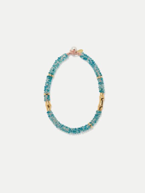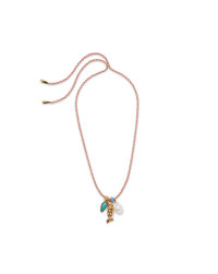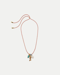 Product details Lizzie Fortunato is an NYC based luxury jewelry who pride themselves in dressing women who follow their own paths, not trends — women who are trailblazers, adventurers, collectors, artists, innovators, intellectuals, and dreamers. We love accessorizing women who dress to tell a story. - Adjustable red silk cord, glass and gold-plated beads, gold-plated etched fish pendant, freshwater pearl charm, and turquoise stone charm - Longest Drop: 14.75" - Style #PF25-N004