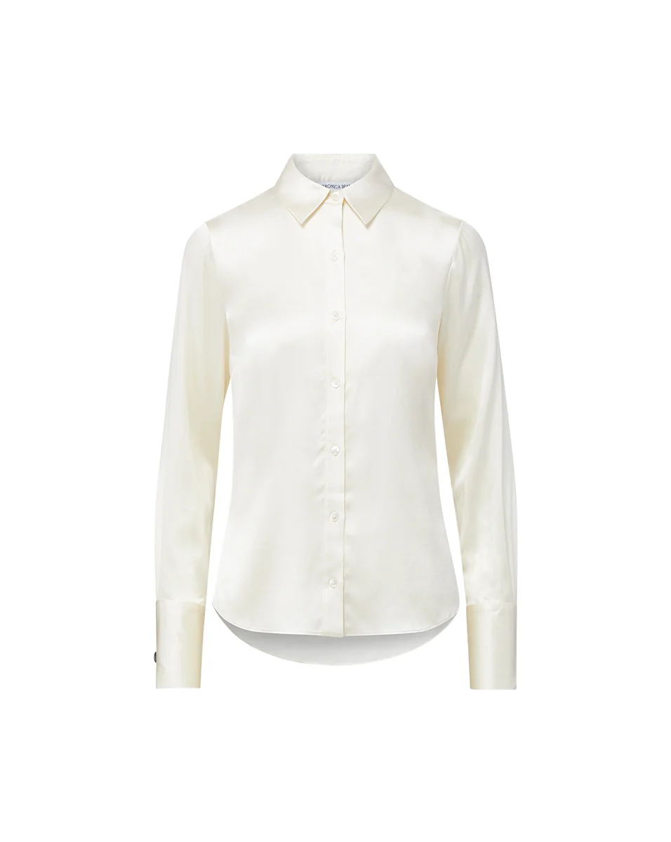 The perfect silk button-down. We obsessed over every detail, from the relaxed fit to the drape, down to the details like the trim collar and elongated cuffs. A wardrobe essential, this pairs well with anything and everything in your closet. DETAILS & FIT - 53% Silk, 35% Viscose, 12% Elastane - Unlined - Length 25.75" | Sleeve length 32.25", based on a size 2 - Our model is 5'10" and is wearing a size 2 - Dry clean only - Style #2408FL5040898