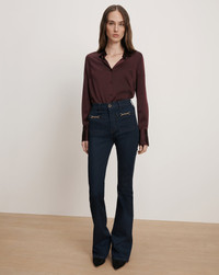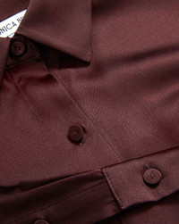 Product details An elevated take on a closet staple. We obsessed over every detail of the Monique—from the relaxed fit and fluid drape to refined touches like the trim collar and elongated cuffs. Crafted from our premium silk blend in deep maroon, it offers both stretch and ease, giving this timeless button-down a distinctly feminine feel. Finished with silk-covered buttons, it’s the piece you’ll reach for season after season. Pair with your favorite denim for everyday ease or tailored trousers for a more polished look. - 53% Silk, 35% Viscose, 12% Elastane - Dry clean only - Style #2509FL5040898