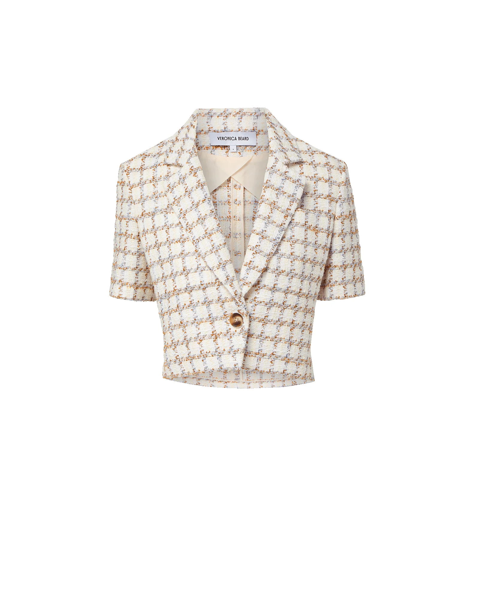 Product details The plaid Montenegro is a single-breasted blazer, reimagined in spring-friendly proportions: cropped, short sleeves, and a relaxed, boxy fit. Expertly tailored from a premium cotton-blend tweed, it's lightweight and—in a neutral plaid set against ecru—endlessly versatile. Wear it with jeans and airy dresses for instant polish or style with the coordinating Jazmin short for a chic set. - 56% Polyester, 25% Cotton, 10% Polyamide, 9% Viscose - Lining: 100% Cupro - Dry clean only, with buttons covered - Style #2603TW12611927