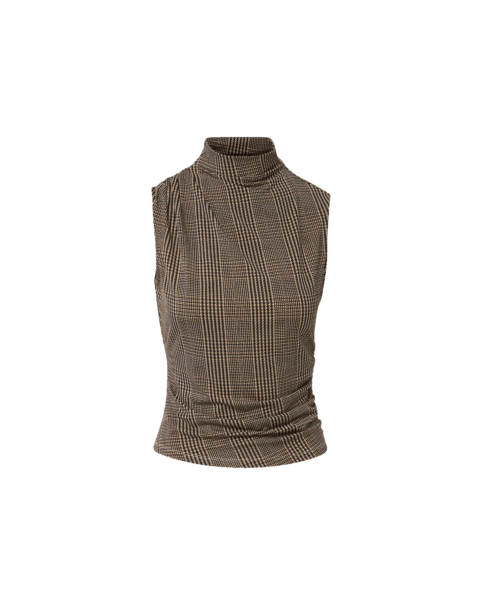 Product details An essential, elevated. Crafted from a soft stretch blend in beige and black houndstooth, the Mylie reimagines the classic tank with a mock neckline and subtle side ruching. Its draped, sleeveless silhouette falls in soft folds, creating fluid, flattering shape. Wear it solo with jeans for a polished daytime look, or layer under a tailored suit for the office. - 90% Lyocell, 10% Elastane - Machine wash cold - Style #J2510JY148S0790