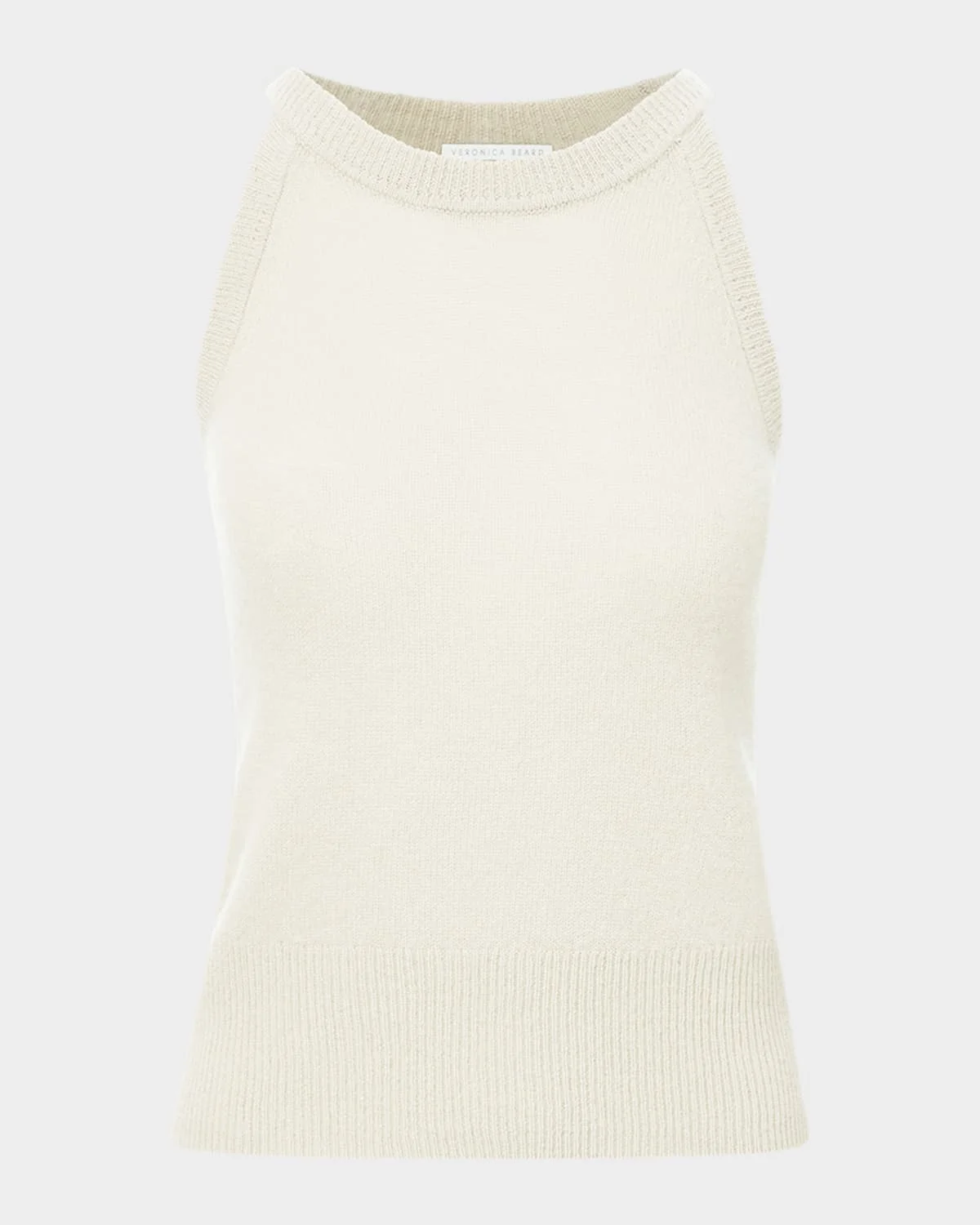 Veronica Beard "Myrick" cashmere tank top featuring ribbed trim Scoop neckline Sleeveless Easy fit Hem sits at the hip Pullover style Cashmere Dry clean Imported