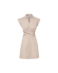 Product details The shirtdress, reimagined. Expertly tailored from crisp cotton, the Nagano mini dress is defined by a crossover waist construction that creates a flattering cinching effect. Finished with cap sleeves and a collared V-neck, the dress comes in versatile brown-and-white stripes. Pair with flat sandals and shades for the perfect weekend look. - 100% Cotton - Lining: 100% Cotton - Dry clean only - Style #2507PO4620576