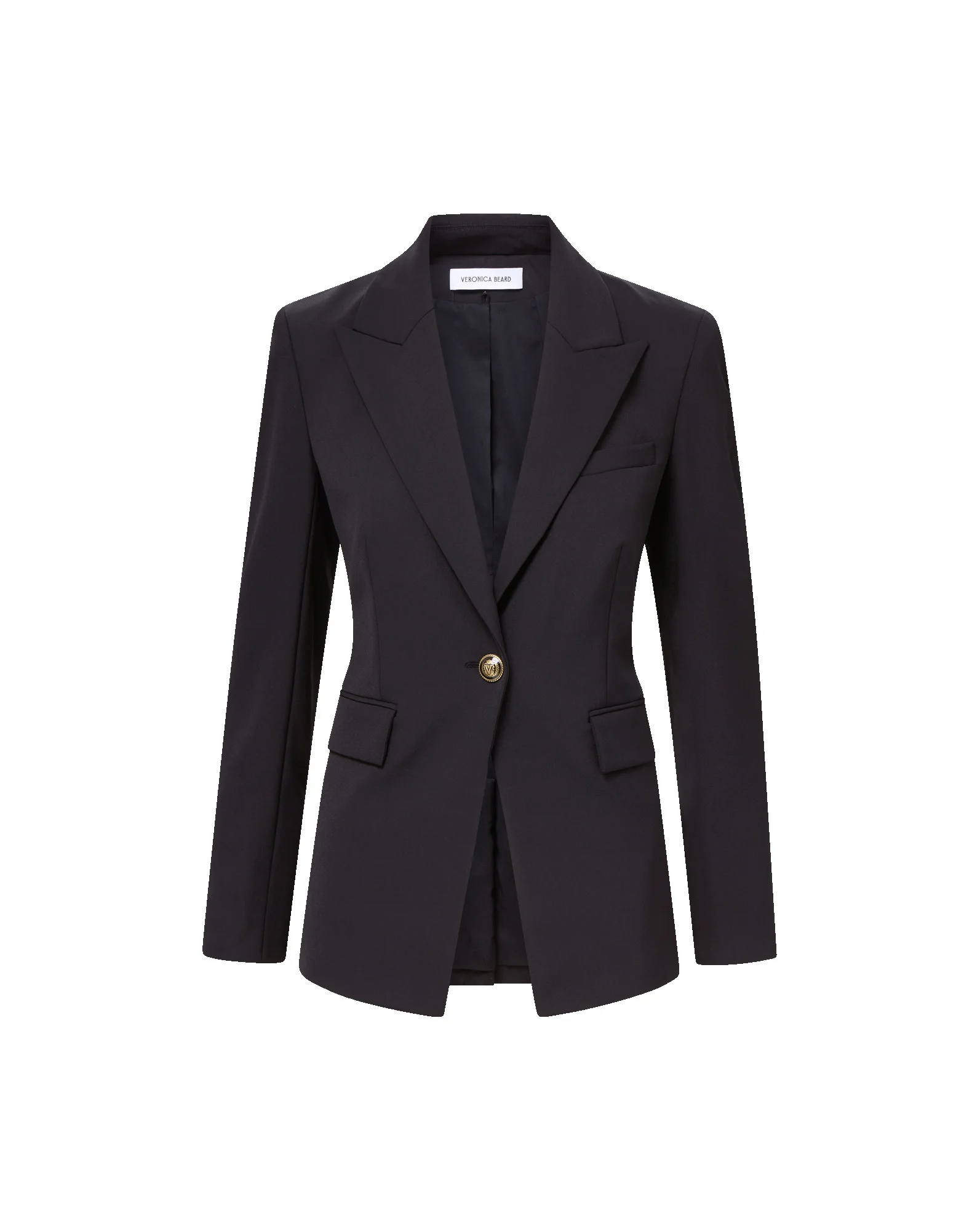 Product details The quintessential navy blazer. Cut for a slim fit, the Naira is constructed from premium stretch blend, allowing for a comfortable fit that moves with you. Featuring single-breasted tailoring and a peak lapel, it’s finished with our signature VB crest buttons and front flap pockets for a polished look. Pair it with the coordinating Dell pant for a complete set—then add a dickey to switch up your look. - 86% Polyamide, 14% Elastane - Lining: 100% Polyester - Fabric country of origin: Italy - Dry clean only - Style #2508BSS11424