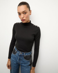 Product details A fashion-forward take on the classic long-sleeve tee. Made from premium stretch cotton, the Nate is defined by a slim fit, a mock neck, and button embellishments on the shoulder. Wear on its own or as a base layer. - 97% Cotton, 3% Elastane - Machine wash cold - Style #J2409JY020S0736