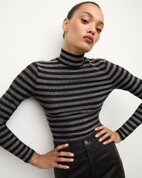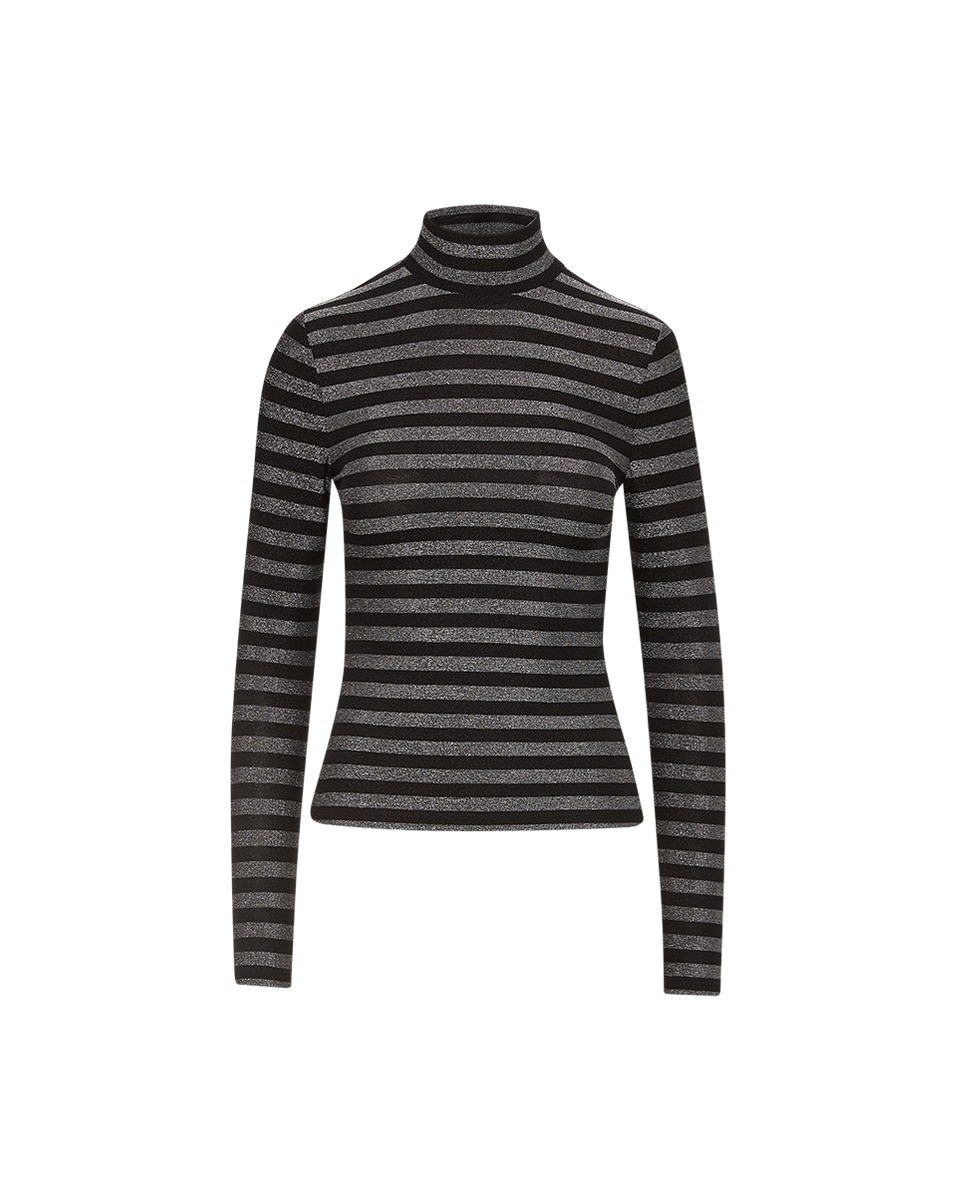 Product details An essential, elevated. The Nate turtleneck boasts a slim, body-skimming fit and bold stripes in black and metallic gunmetal. This is the ultimate foundation piece—dressed up or down, perfect on its own or as a base layer. - 70% Polyamide, 25% Metallic Fiber, 5% Elastane - Dry clean only - Style #J2409JY146S0736