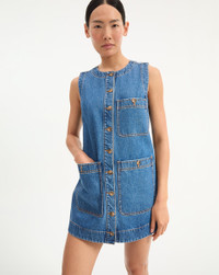 Product details Mod, made modern. Made from 100% cotton, the Oakley minidress features a relaxed fit and a sleeveless shift silhouette. A trio of roomy pockets and tortoiseshell buttons down the front complete the look. Pair with sandals or sneakers—it's great for weekends and wanderlust. - 100% Cotton - Unlined - Turn inside out and machine wash cold. Hang to dry. - Style #J2502D161301CF