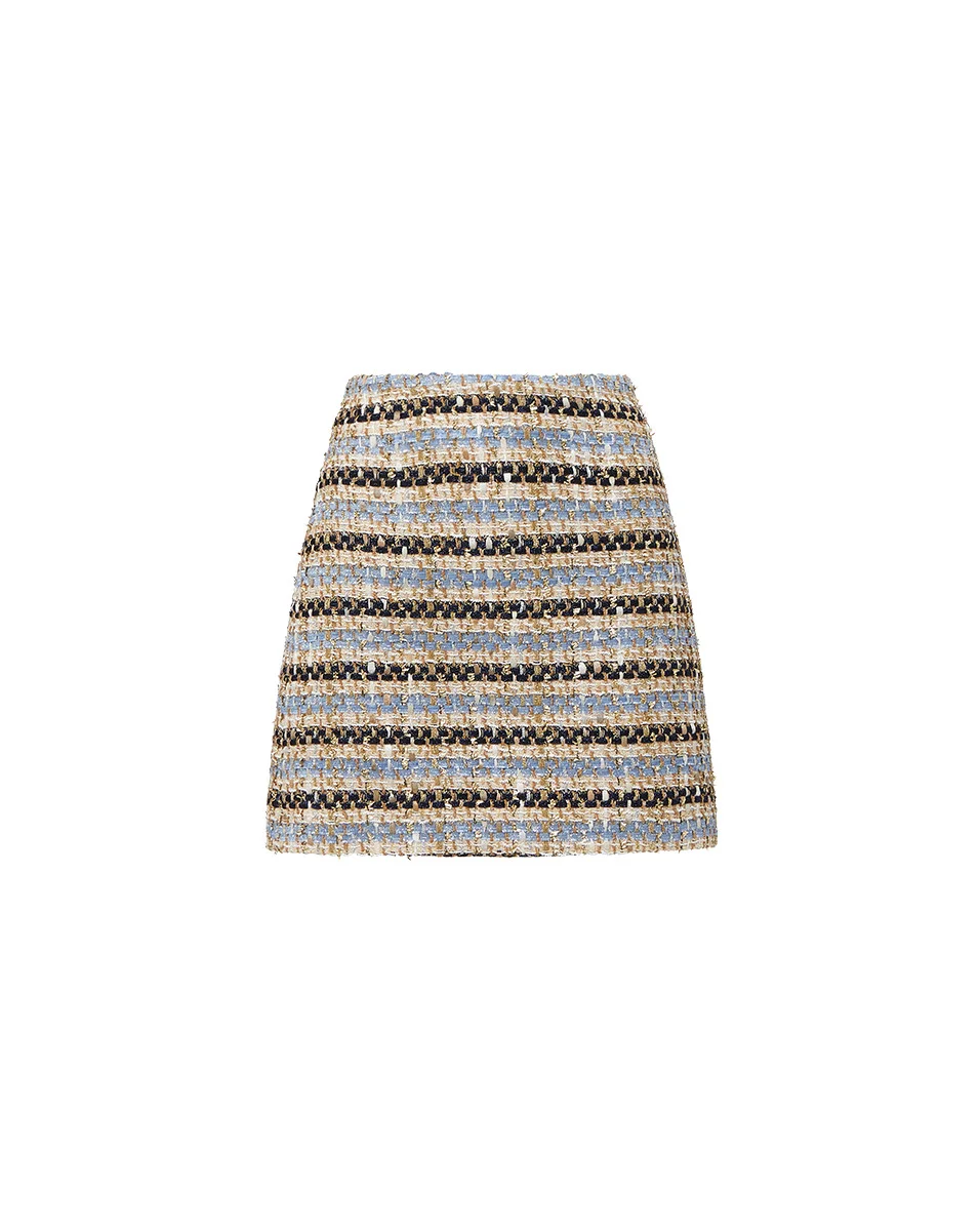 Product details The classic tweed skirt, with shots of metallic threading. Expertly tailored from Italian stretch cotton, the Ohemia mini features a clean A-line silhouette for optimum versatility. Pair with the coordinating Sumira jacket for a chic matching set. - 42% Cotton, 15% Acrylic, 15% Viscose, 15% Polyamide, 10% Metallic Fibers, 3% Polyester - Lining: 100% Polyester - Fabric country of origin: Italy - Dry clean only - Style #2412TW8330262