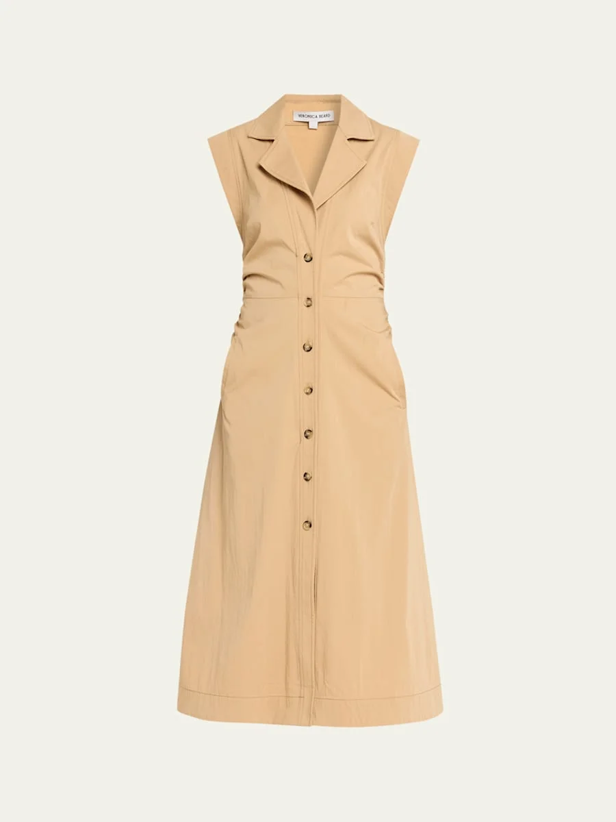 The "Orla" shirtdress by Veronica Beard is cut from a comfortable stretchcotton blend and boasts side ruching that defines the silhouette and lends shape. Notched collar Cap sleeves Side pockets Aline silhouette Hem falls below the knee Buttonfront Cotton/nylon/polyamide/elastane Lining: Polyester Dry clean only Made in USA from imported materials SIZE amp; FITModel measurements: 5'10" tall Model is wearing a US size 4/Small