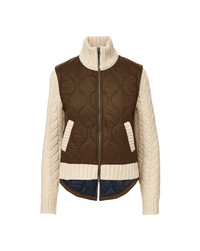 Product details Two-for-one style. The Patra Jacket combines a quilted body with wool-blend cable-knit sleeves for striking contrast, giving you the best of both worlds: the warmth of a coat and the comfort of your favorite sweater. It’s designed with a high-low hem—cropped in front, elongated in the back—and finished with a chunky knit stand collar, ribbed trim, and patch pockets. Layer it over any look on chillier days. - 100% Nylon, 80% Wool, 20% Polyamide - Dry clean only - Style #2508KA2290261
