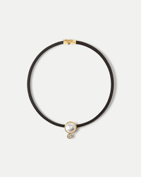 Product details The pearl necklace—made modern. Falling just below the collarbone, this black leather cord necklace features a white pearl and crystal pendant, set in 14k gold-plated brass. A secure barrel clasp ensures easy wear. Polished yet cool, pair it with a V-neck or layer over a turtleneck. - 14k Gold-Plated Brass, Leather - Stone: Pearl and Glass - Length 17” - Gently wipe the surface with a soft cloth to clean. Avoid direct contact with lotions, perfumes, or oils. - Style #96-N0011