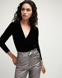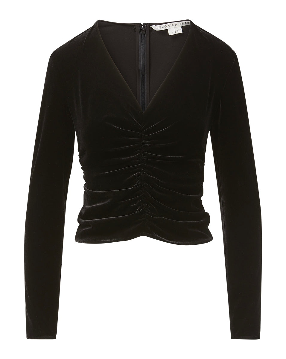 Bring the plush glamour of velvet to your everyday with the Pelona. Cut from a fluid stretch-velvet and designed with flattering center ruching, it molds the body beautifully. With its V-neck and long-sleeves, it's easy to wear, too—an ideal partner to jeans, skirts, pants; you name it. DETAILS & FIT - 79% Rayon, 18% Silk, 3% Elastane - Our model is 5'10" and is wearing a size 2 - Sleeve length 31" | Length 19 3/4", based on a size 2 - Professional dry clean only - Style #2310FL2340617