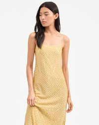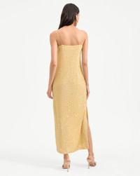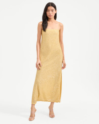Product details The evening dress, perfected. The Petra maxi dress is equal parts ease and elegance. Featuring a clean, streamlined column silhouette, the chiffon body is hand-beaded in India with a mix of glass bugle beads and paillettes in an intricate netted pattern, evoking coastal textures. Finished with adjustable straps, a square neckline, and a hidden side zipper, it’s the perfect choice for your upcoming summer soirees—just add a simple heeled sandal. - 100% Polyester, 100% Glass (Beads) - Lining: 100% Polyester - Dry clean only. Store flat. - Style #2505EM8721378